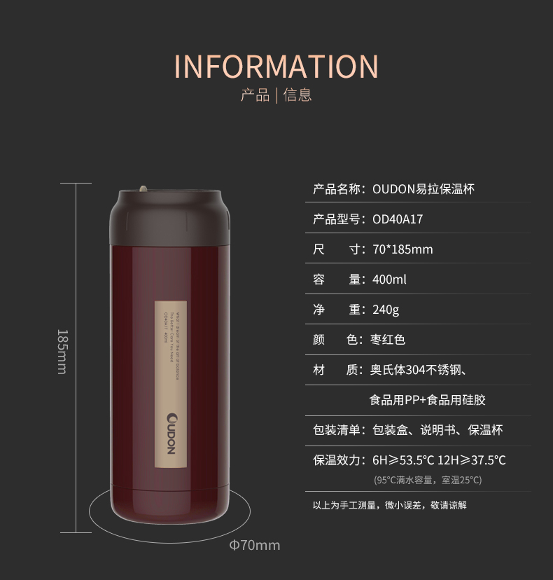 首頁 > 全部禮品 > 水具禮品 > 保溫杯 > OUDON 貝西系列 車載杯 OD-40A17