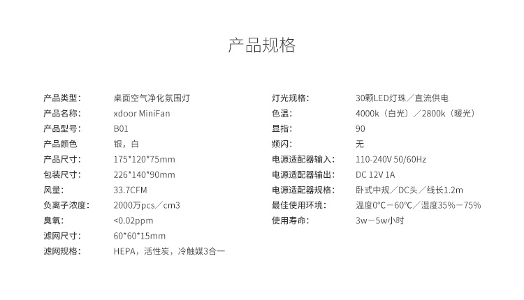 • xdoor Mini Fan 桌面空氣凈化氛圍燈