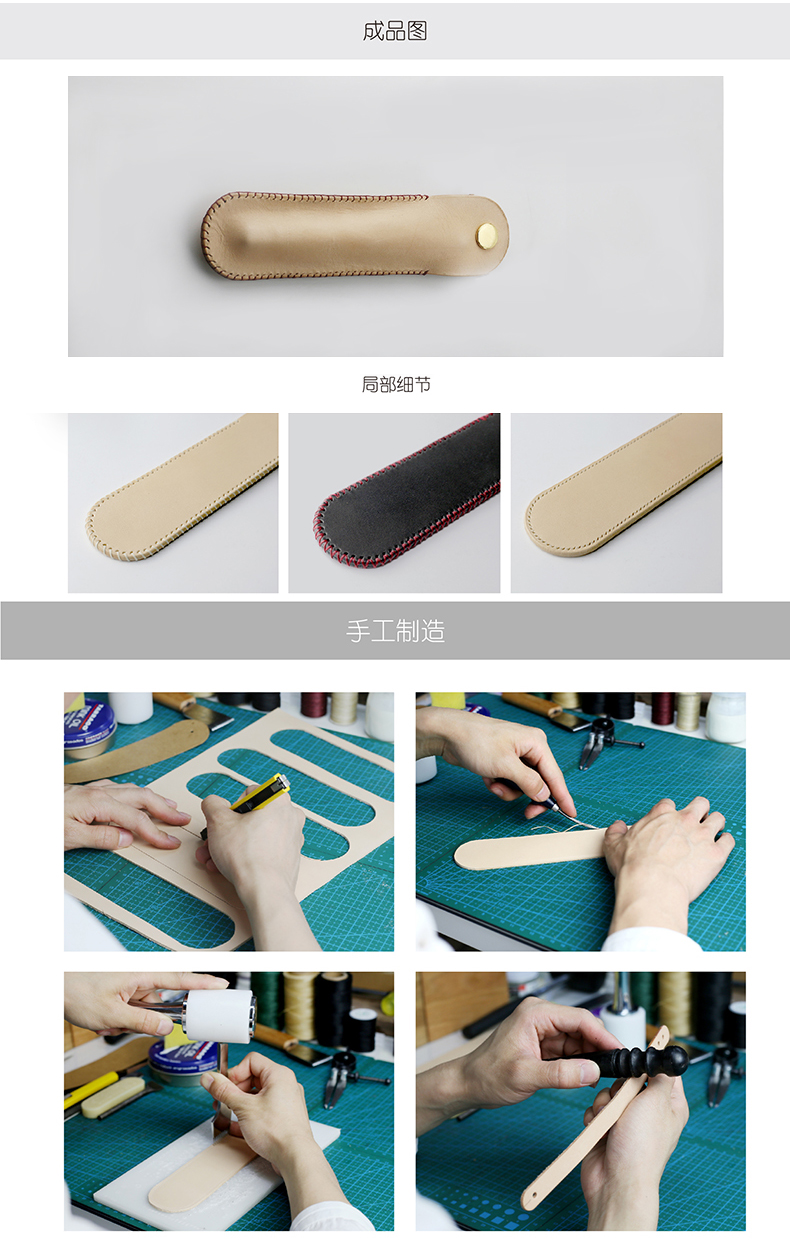 • 進(jìn)口高檔頭層植鞣革牛皮手工制作通用學(xué)生創(chuàng)意文具隨身筆袋
