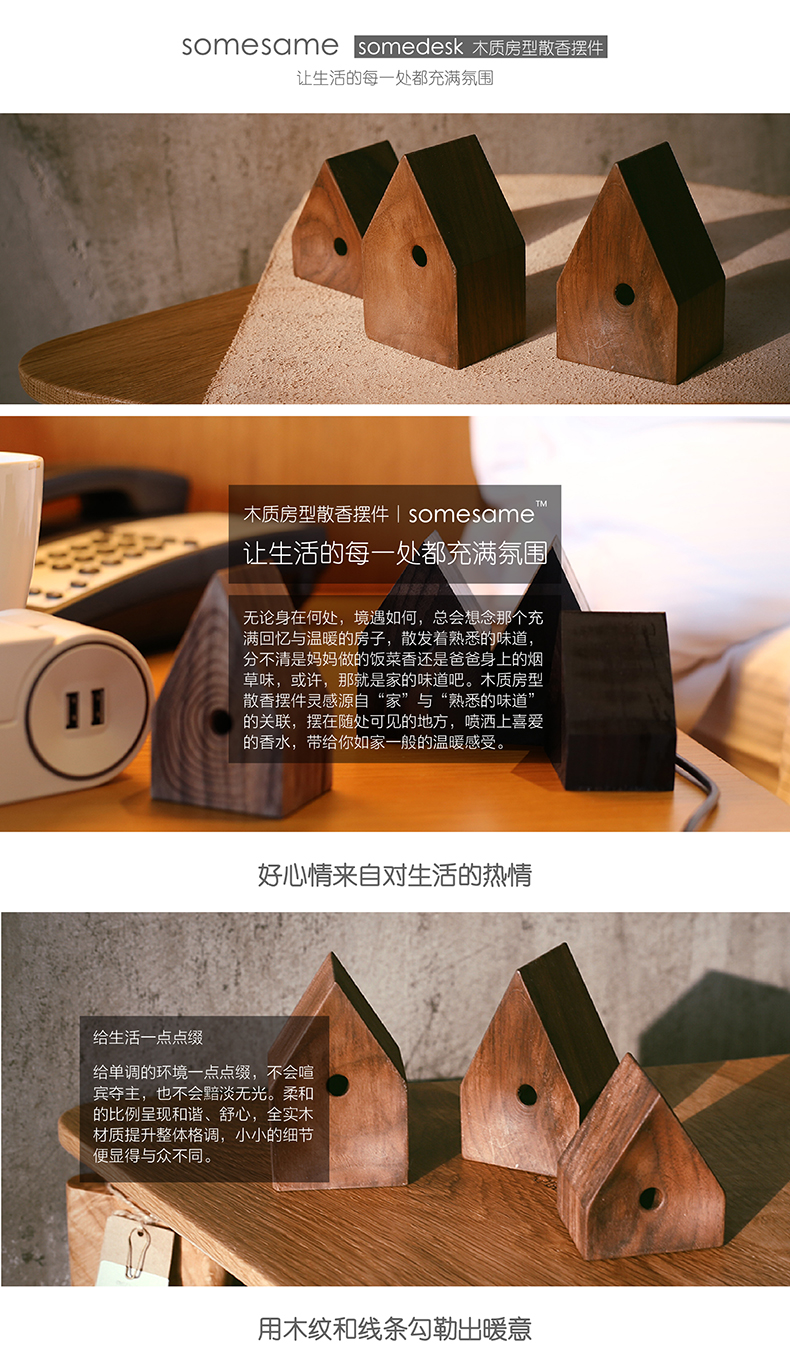 • 木質(zhì)小房子原木香水散香擺件獨特個性創(chuàng)意臥室書房辦公香薰器