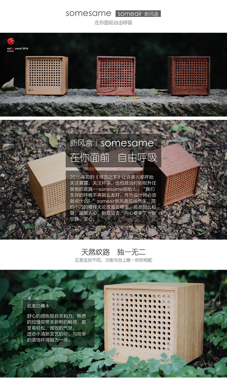新風盒紅點獎空氣凈化器小巧創(chuàng)意木制環(huán)??蛷d家用(木質(zhì)不同價格不同 )