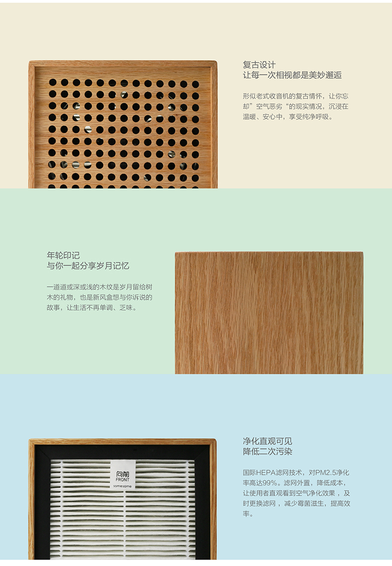 • 新風盒紅點獎空氣凈化器小巧創(chuàng)意木制環(huán)??蛷d家用(木質(zhì)不同價格不同 )