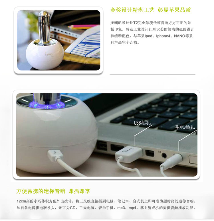 首頁 > 全部禮品 > 電子數(shù)碼 > 音響 > I-Mu/幻響 T2共振音響筆記本電腦迷你創(chuàng)意手機(jī)usb小音箱低音炮