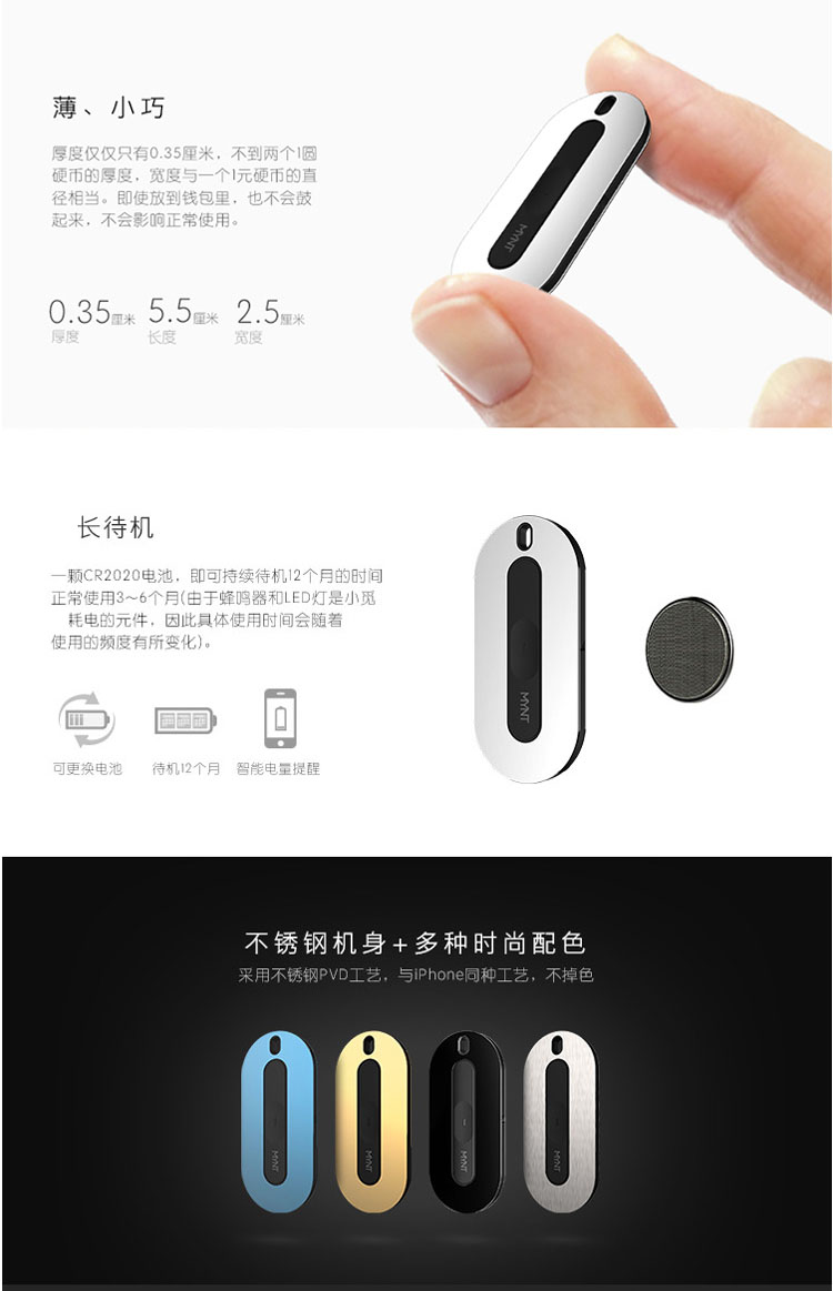 首頁 > 全部禮品 > 電子數(shù)碼 > 其它創(chuàng)意電子產品 > MYNT小覓防丟器手機智能藍牙定位防丟貼片車鑰匙扣雙向報警尋物器