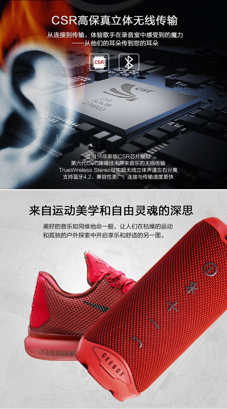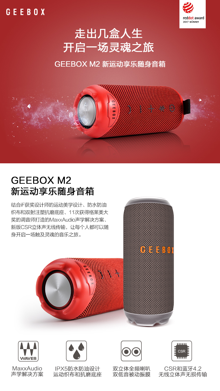 首頁 > 全部禮品 > 電子數碼 > 音響 > GEEBOX(幾盒)M2紅色 藍牙便攜音響迷你小音響 戶外音響 低音炮 高保直通話
