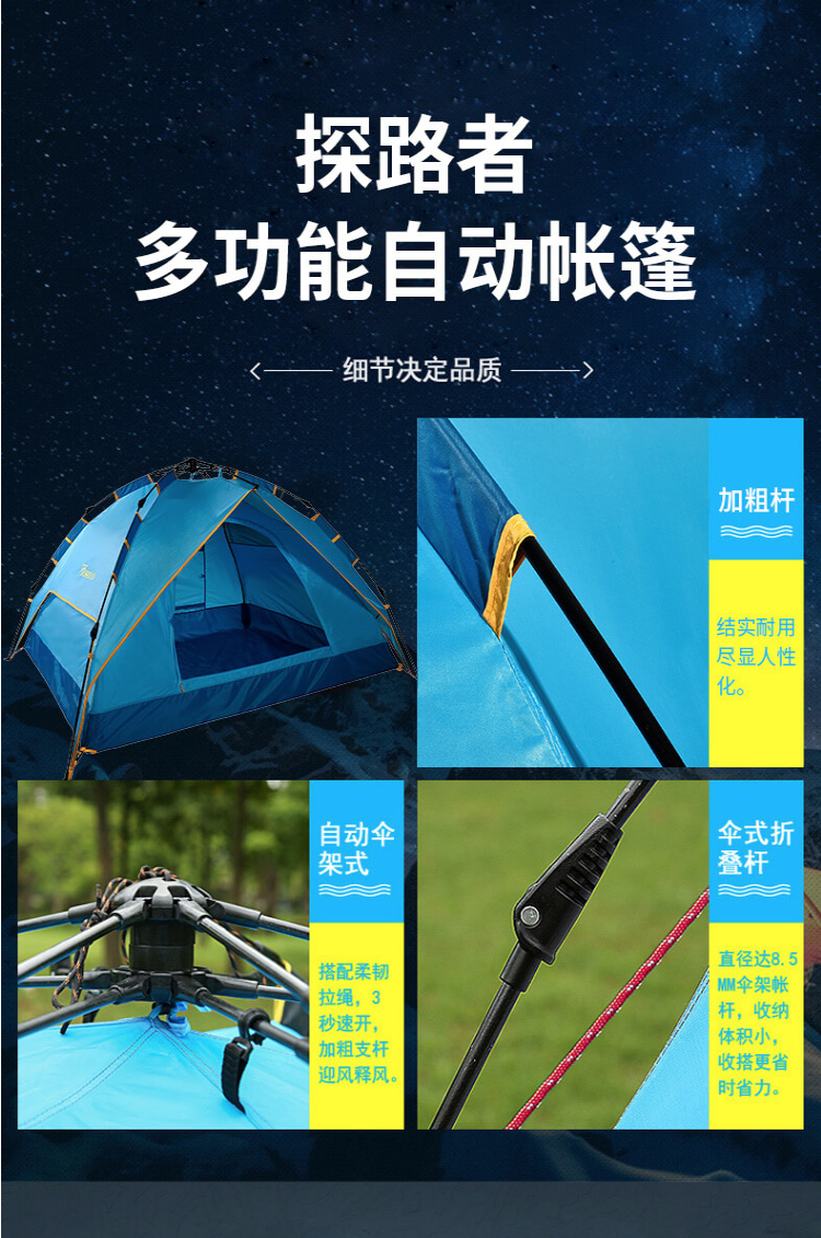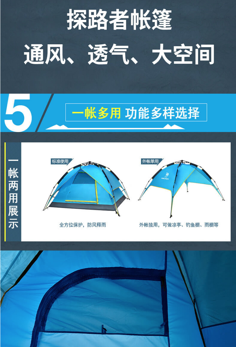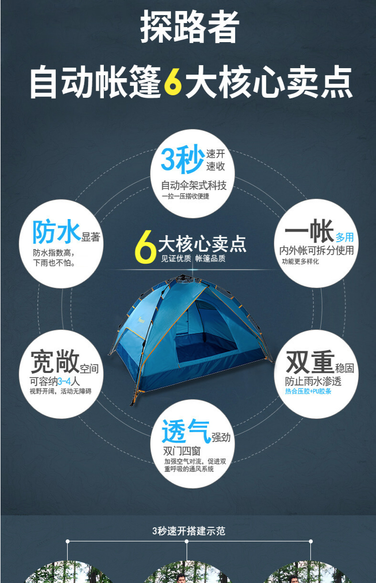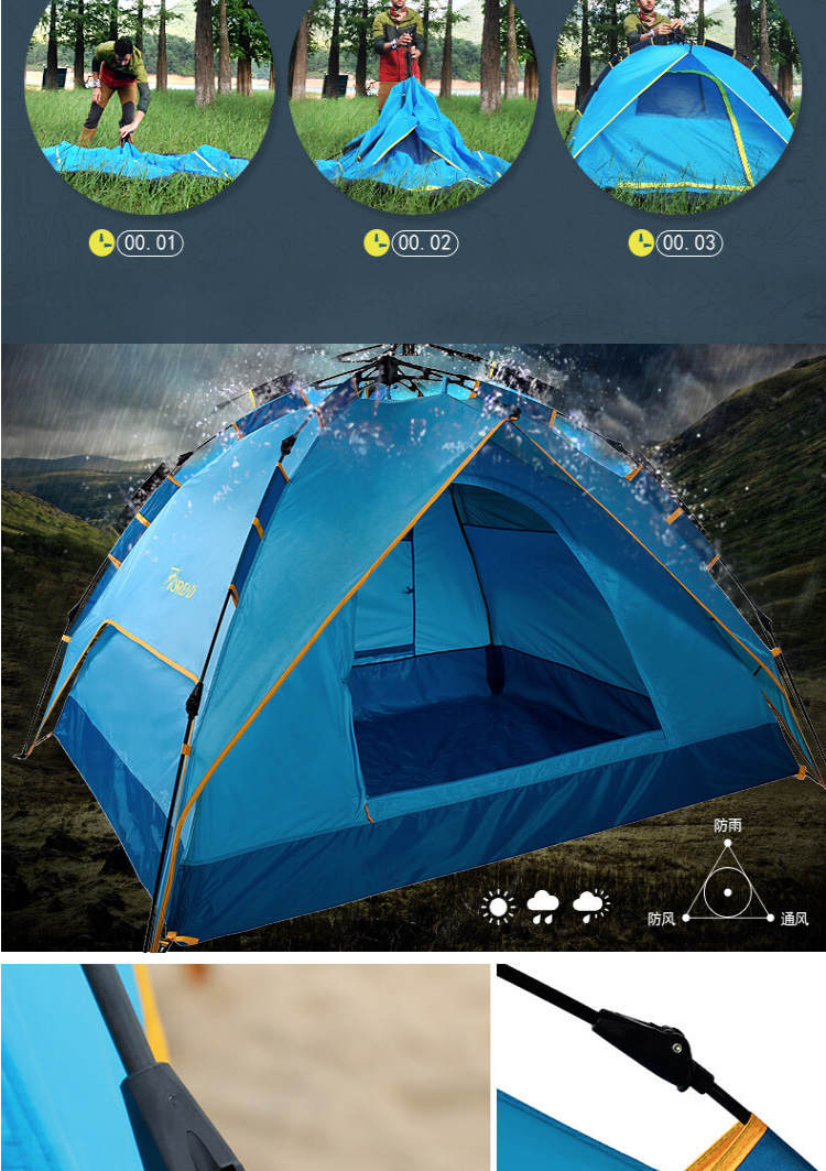 首頁 > 全部禮品 > 旅行運(yùn)動(dòng) > 帳篷 > 探路者TOREAD自動(dòng)速開免搭建帳篷 防雨透氣 戶外通款三人一層半帳篷