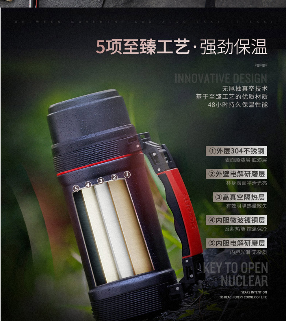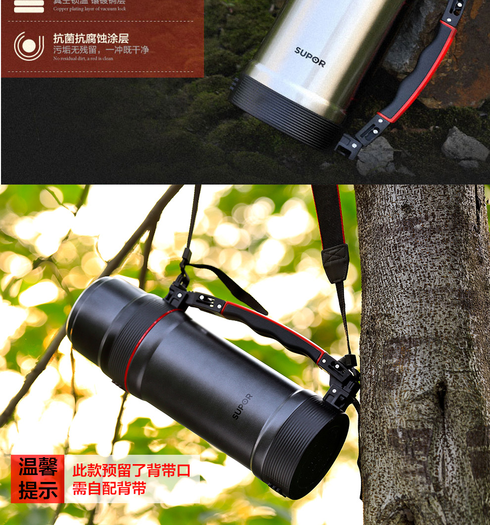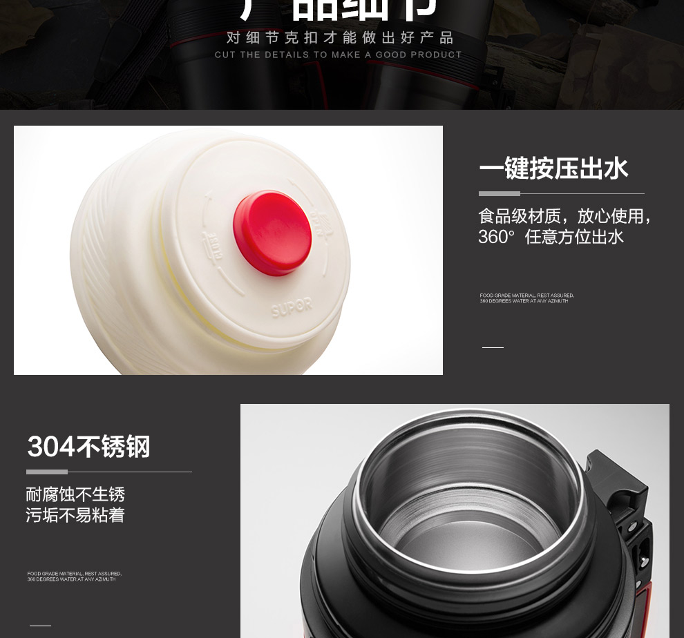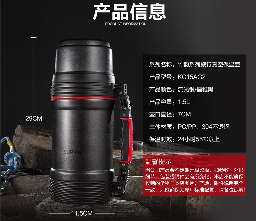 蘇泊爾(SUPOR)旅行壺不銹鋼熱水瓶1.5L 真空保溫杯 男戶(hù)外旅行 家用大容量暖水瓶 車(chē)載旅游水壺