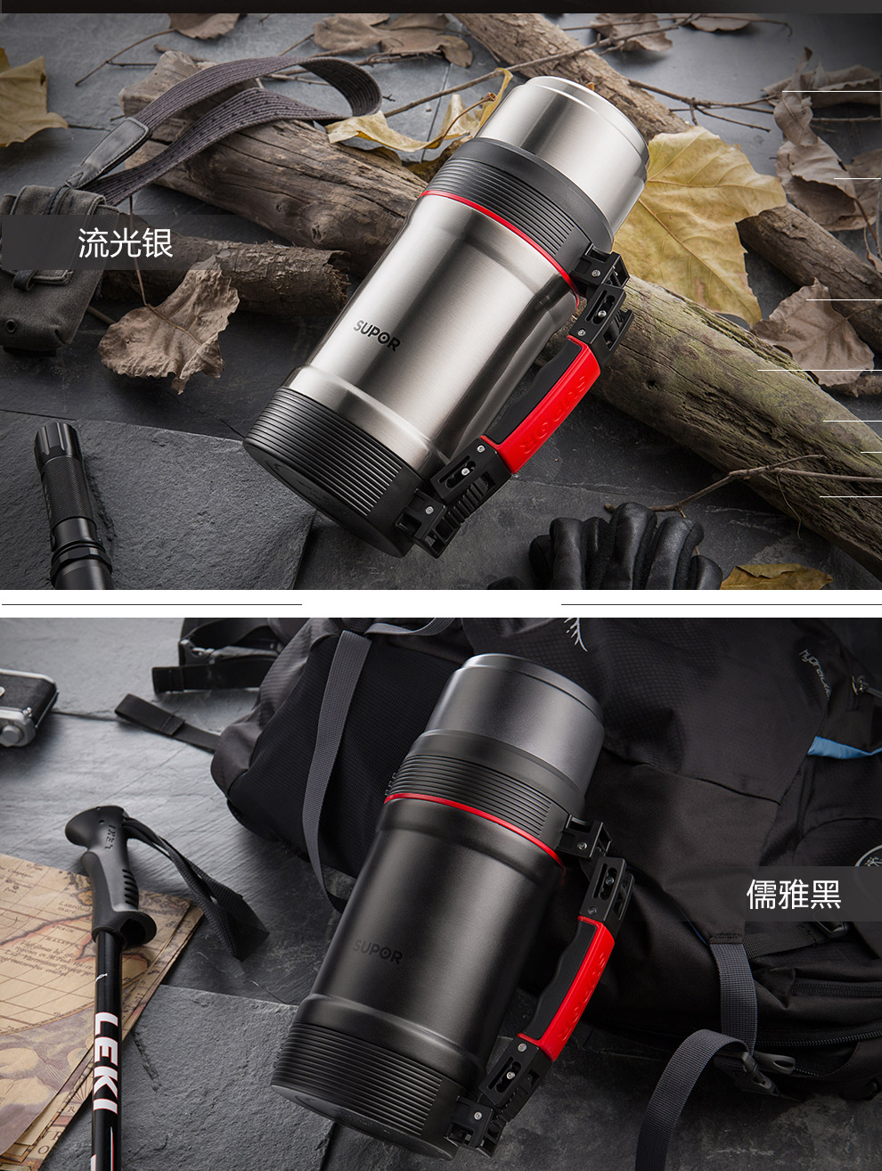 • 蘇泊爾(SUPOR)旅行壺不銹鋼熱水瓶1.5L 真空保溫杯 男戶(hù)外旅行 家用大容量暖水瓶 車(chē)載旅游水壺