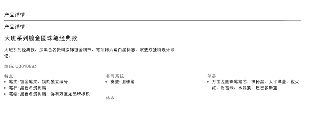 首頁 > 全部禮品 > 辦公用品 > 鋼筆 > 萬寶龍大班系列鍍金圓珠筆經(jīng)典款