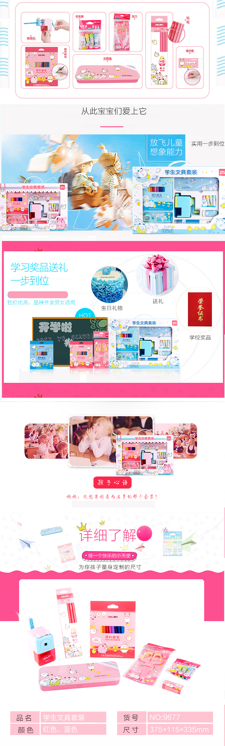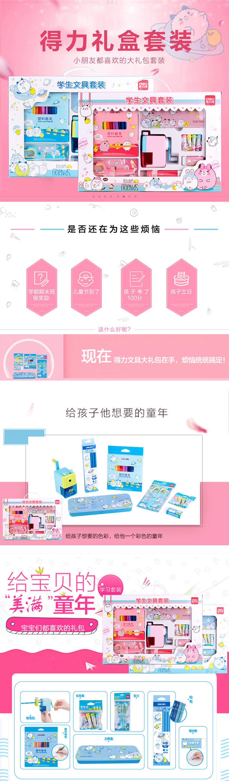 得力萌趣1-3年級學生學習用品文具套裝禮盒 7件套