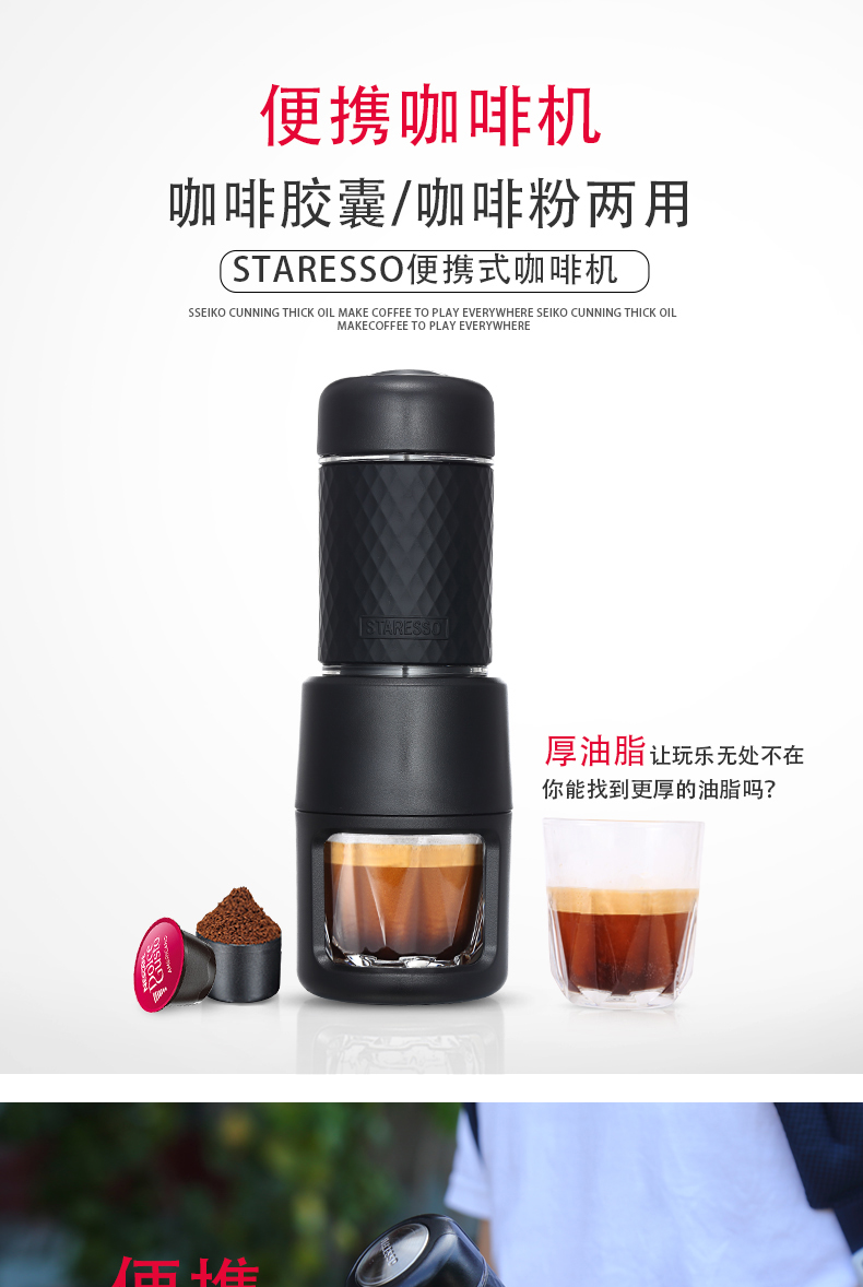 首頁 > 全部禮品 > 家居家電 > 咖啡機(jī)/豆?jié){機(jī) > STARESSO 家用便攜式手動迷你意式濃縮咖啡機(jī)意式可用膠囊 戶外手壓咖啡壺+便攜包+膠囊
