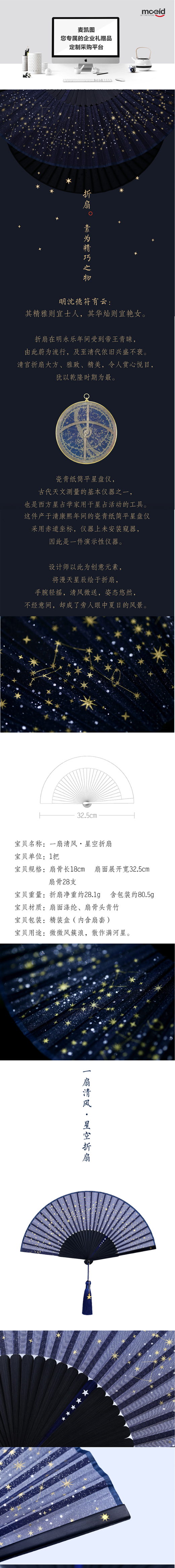 • 【故宮淘寶】微微風(fēng)簇浪,散作滿河星-燙金星空超薄透女士折扇