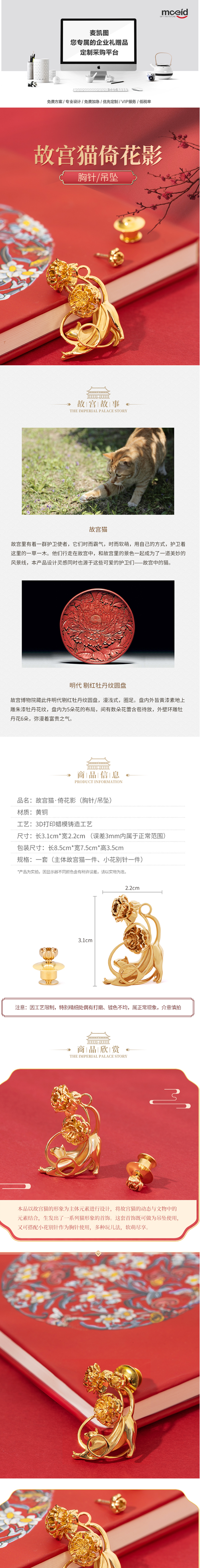• 故宮文化 故宮貓倚花影胸針黃銅項(xiàng)墜文創(chuàng)禮品 生日紀(jì)念日結(jié)婚520禮物 故宮貓倚花影