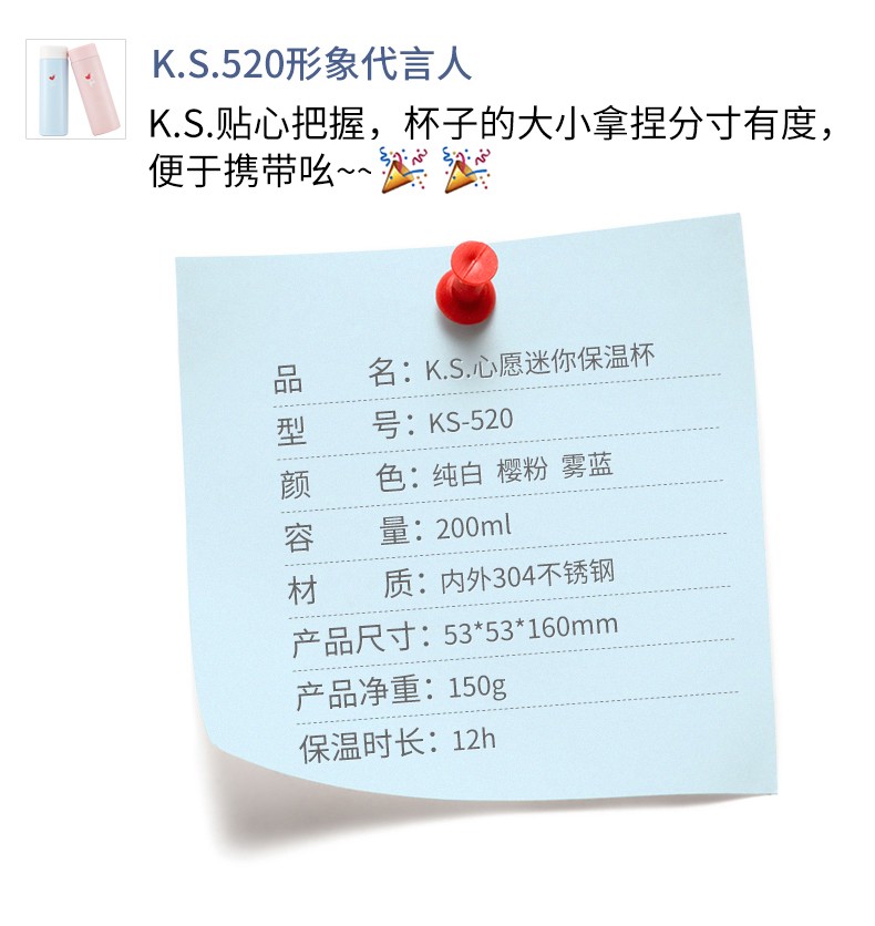首頁 > 全部禮品 > 水具禮品 > 保溫杯 > K.S-520 心愿迷你保溫杯