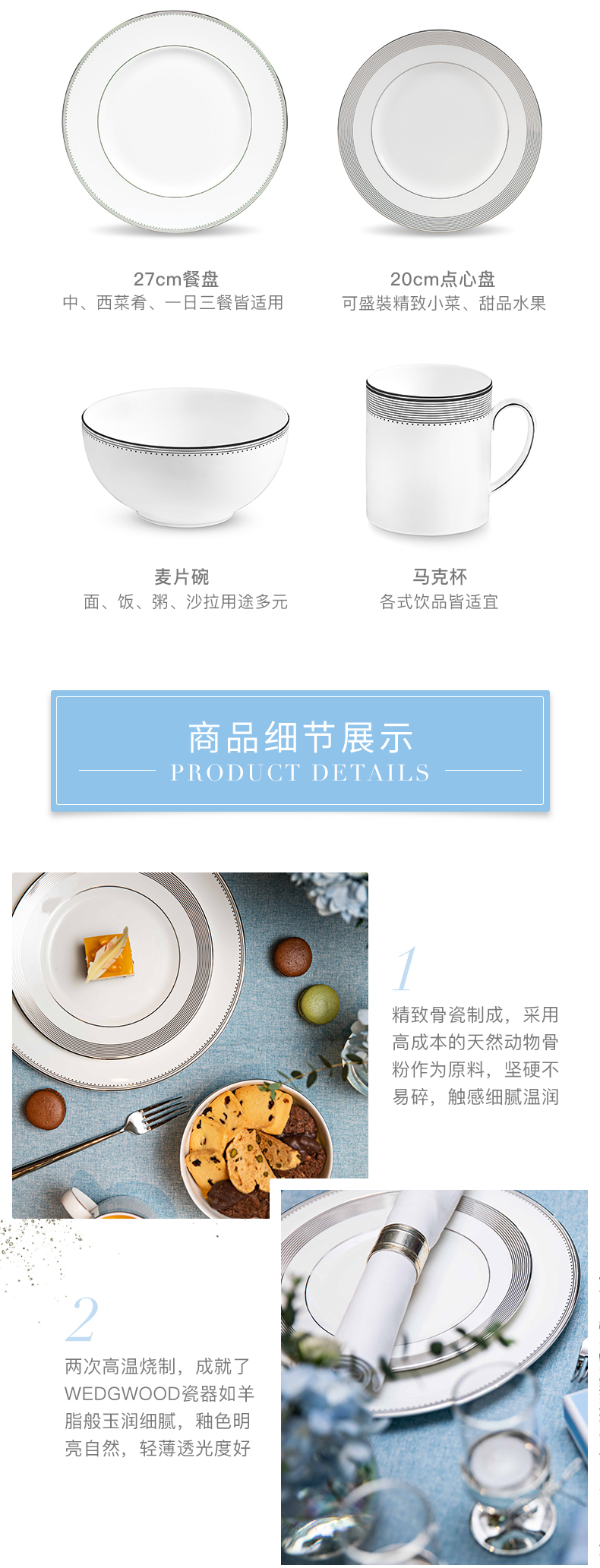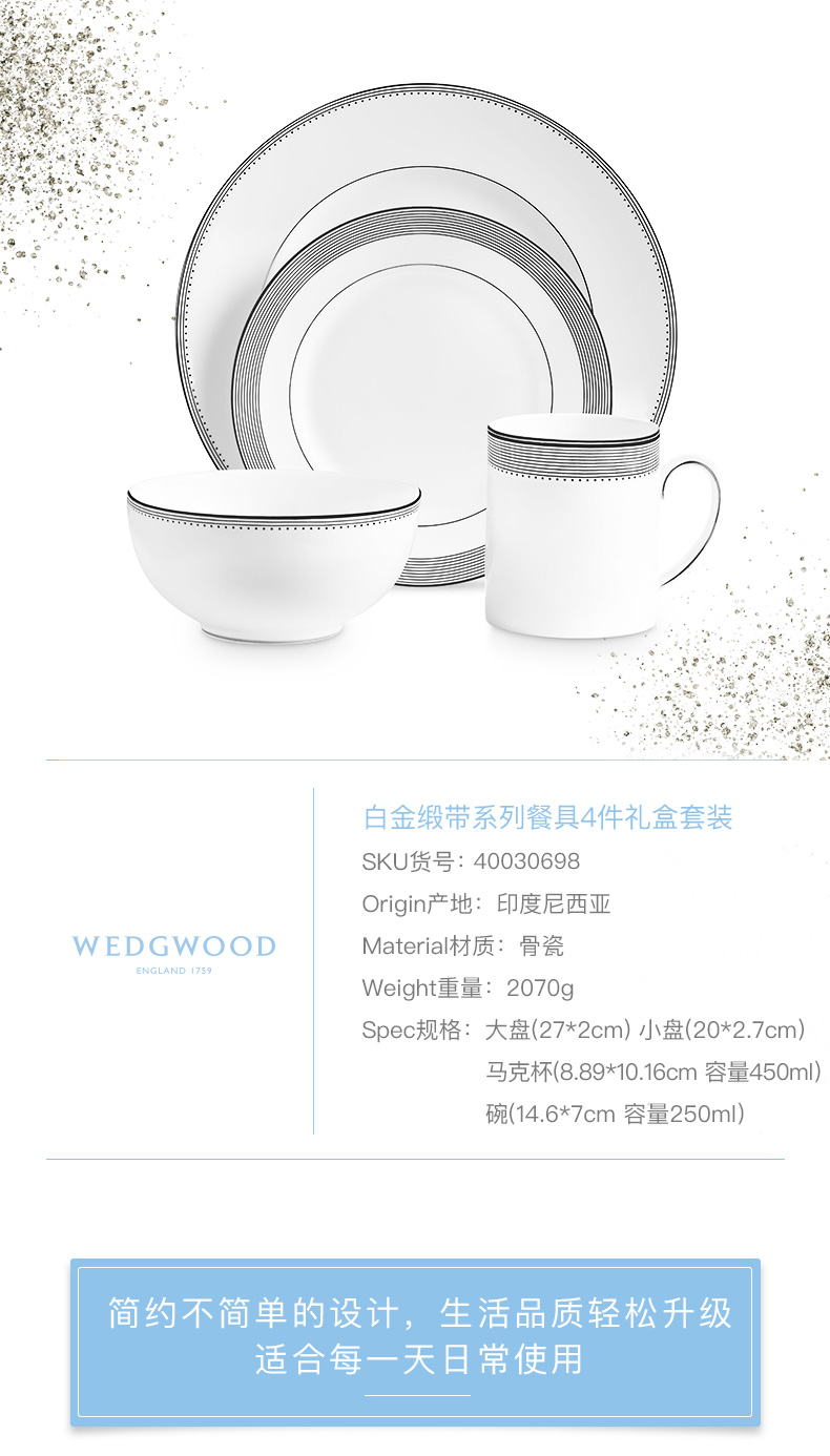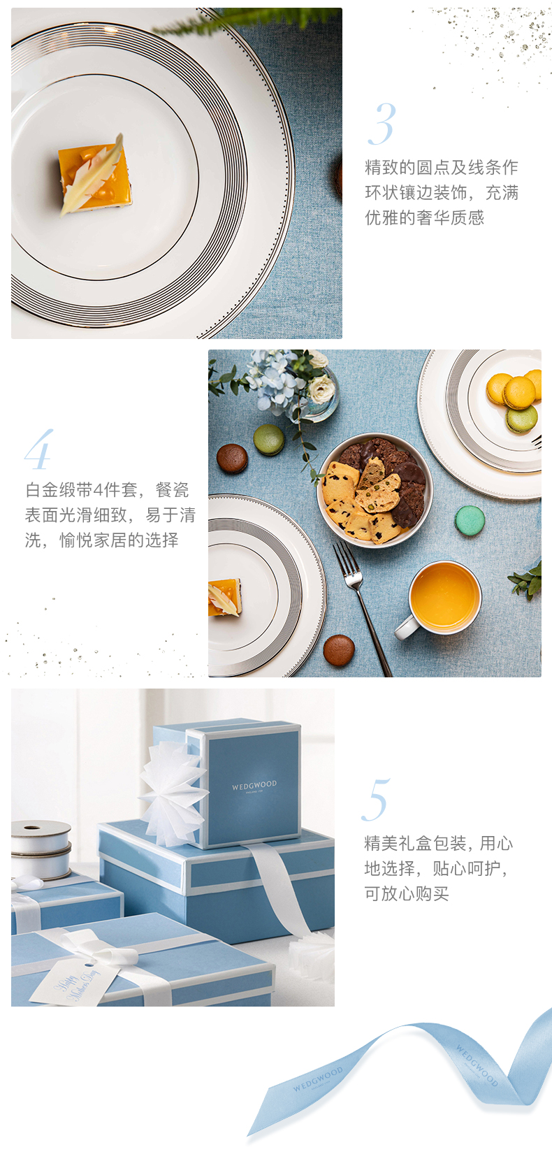 • WEDGWOOD王薇薇Vera Wang白金緞帶四件組骨瓷餐具