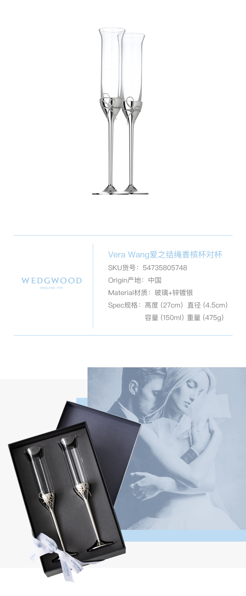 • WEDGWOOD王薇薇Vera Wang愛之結(jié)繩香檳杯紅酒對(duì)杯