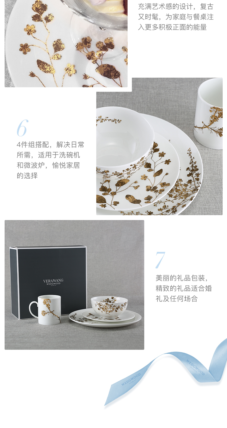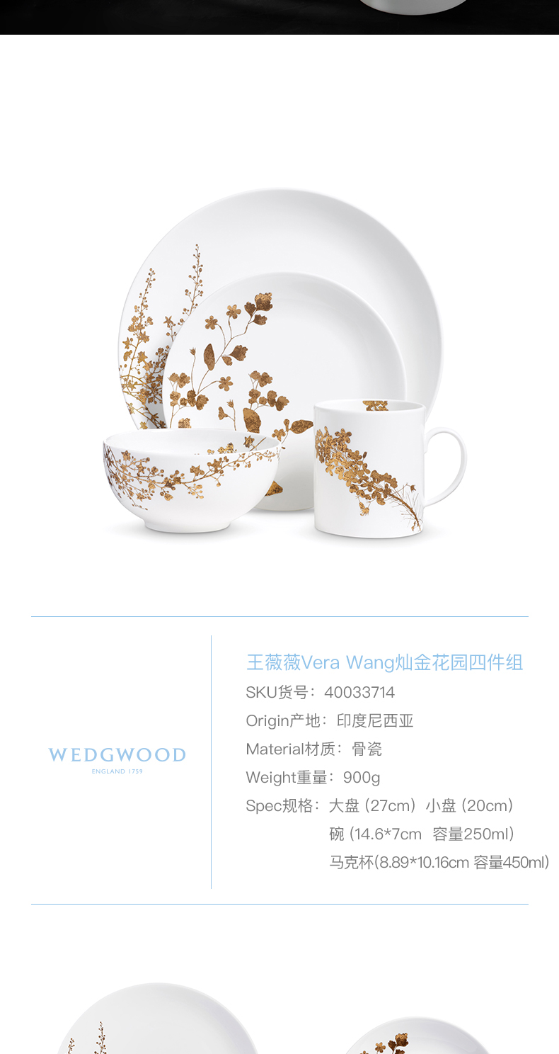 首頁 > 全部禮品 > 家居家電 > 廚房餐具 > WEDGWOOD瑋致活王薇薇Vera Wang燦金花園餐盤碗馬克杯四件組