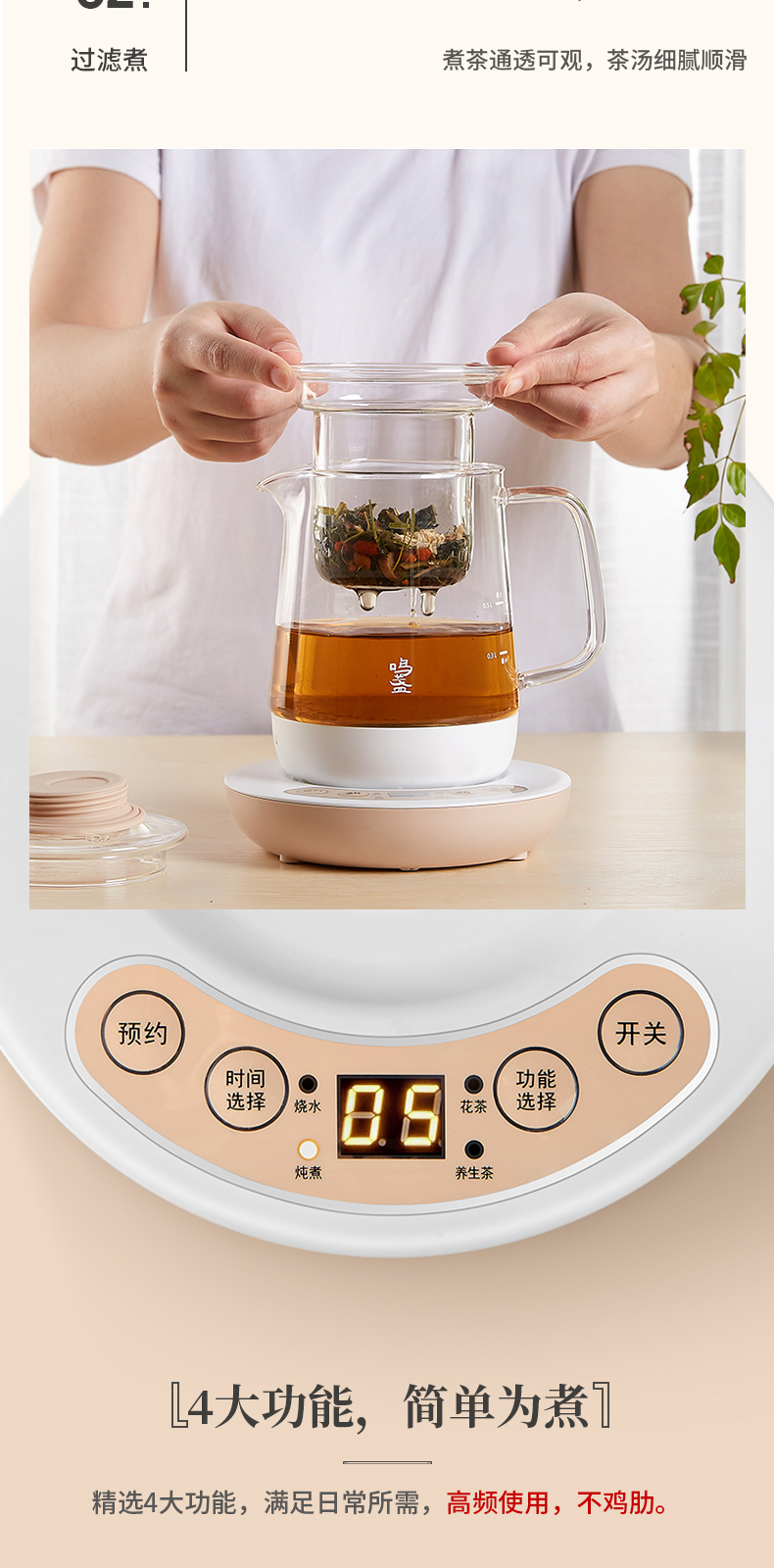 鳴盞養(yǎng)生壺辦公室小型家用多功能全自動(dòng)加厚玻璃壺花茶煮茶器壺具