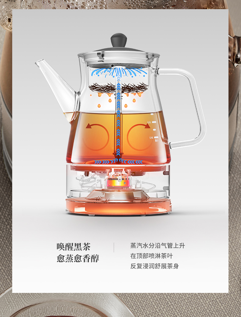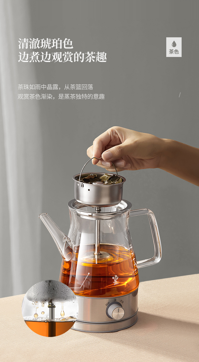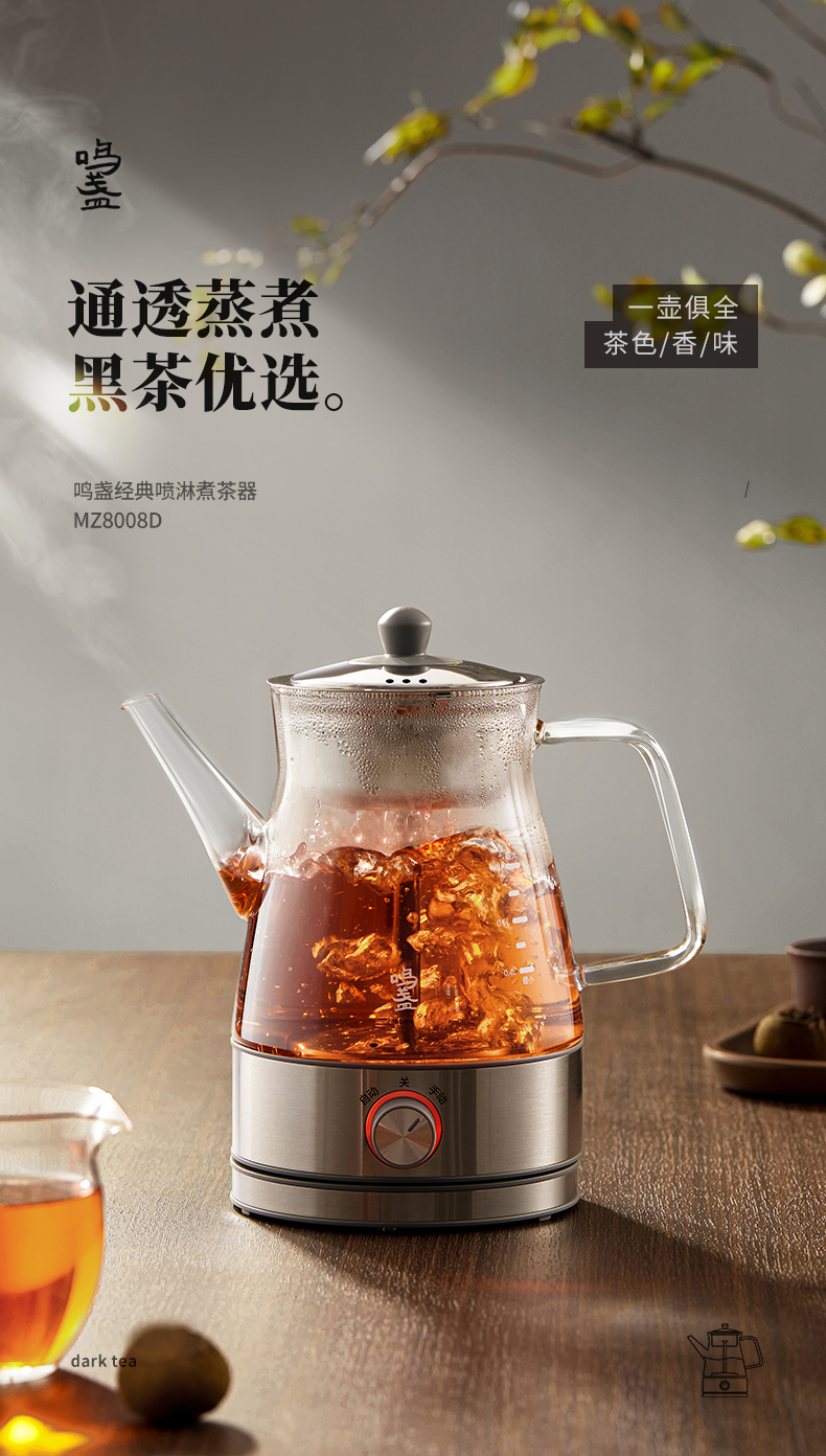 鳴盞蒸汽煮茶器黑茶普洱家用蒸茶壺蒸茶器全自動(dòng)玻璃養(yǎng)生壺煮茶壺