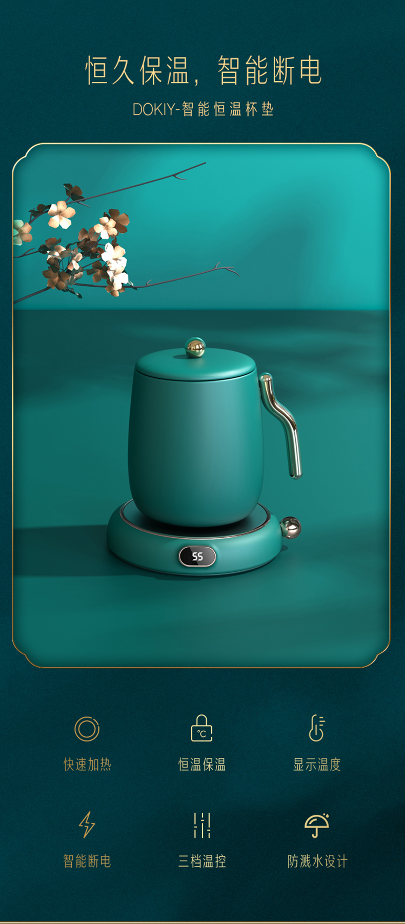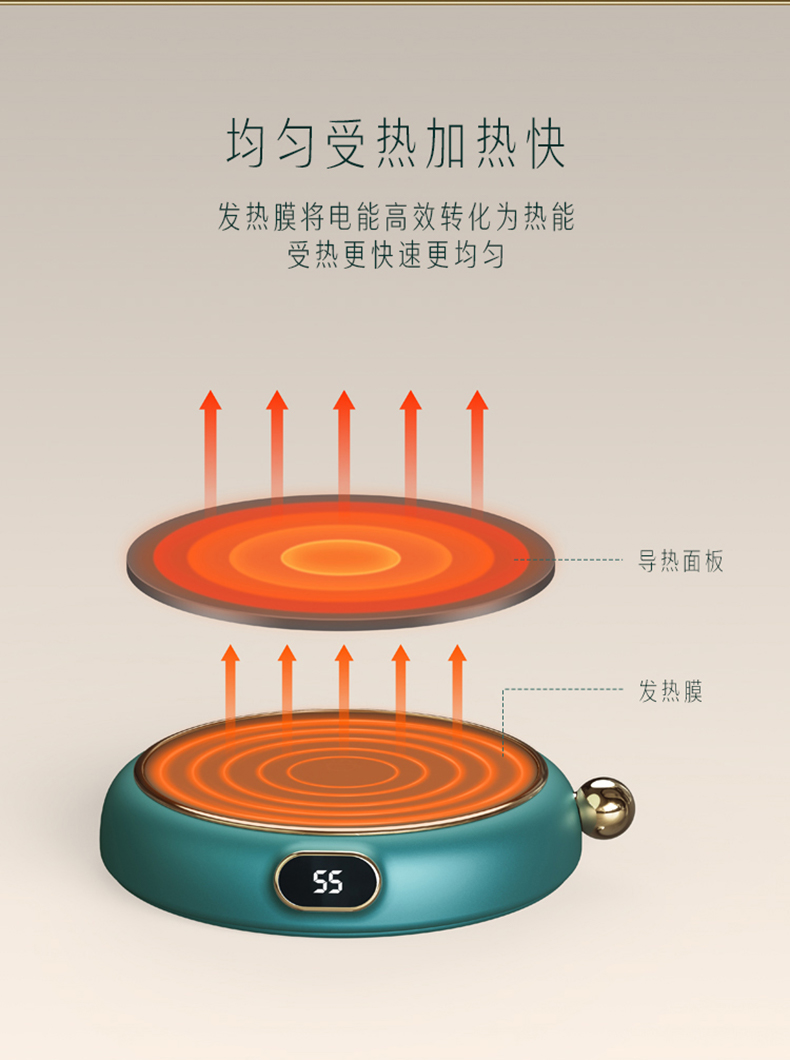 Dokiy加熱杯墊可調(diào)溫暖暖杯55度恒溫杯子水杯保溫底座自動調(diào)節(jié)智能家用usb熱水保暖防燙防水快速熱牛奶神器
