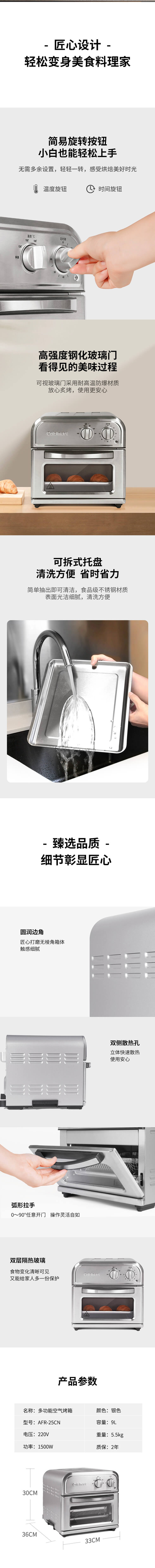 美膳雅(Cuisinart)電烤箱家用多功能熱風(fēng)循環(huán)熱風(fēng)爐空氣炸烘焙吐司面包 AFR-25CN 銀色