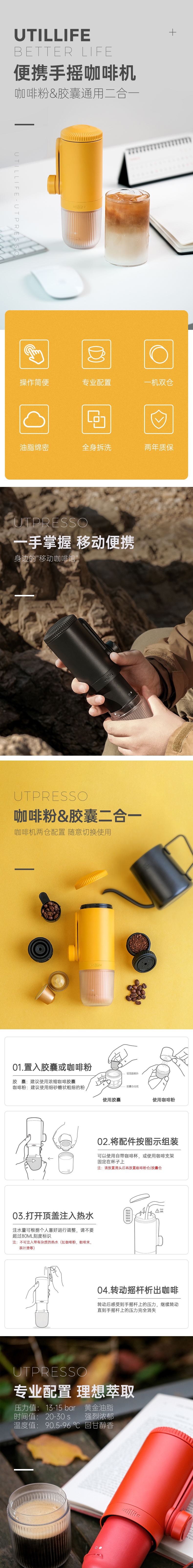 Utillife便攜咖啡機(jī)意式手動戶外隨身通用手搖咖啡粉膠囊咖啡機(jī)