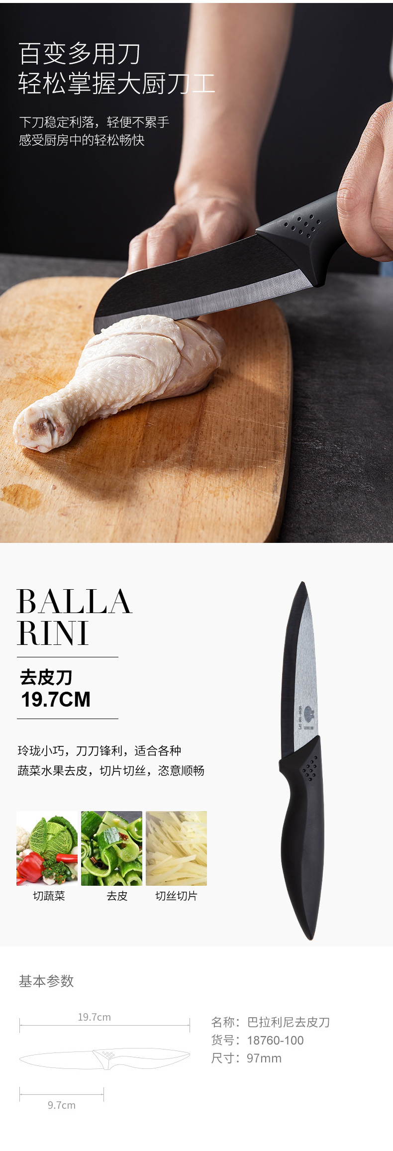 首頁(yè) > 全部禮品 > 家居家電 > 廚房餐具 > 巴拉利尼旗艦店陶瓷刀四件套家用廚房黑刃刀具去皮水果刀