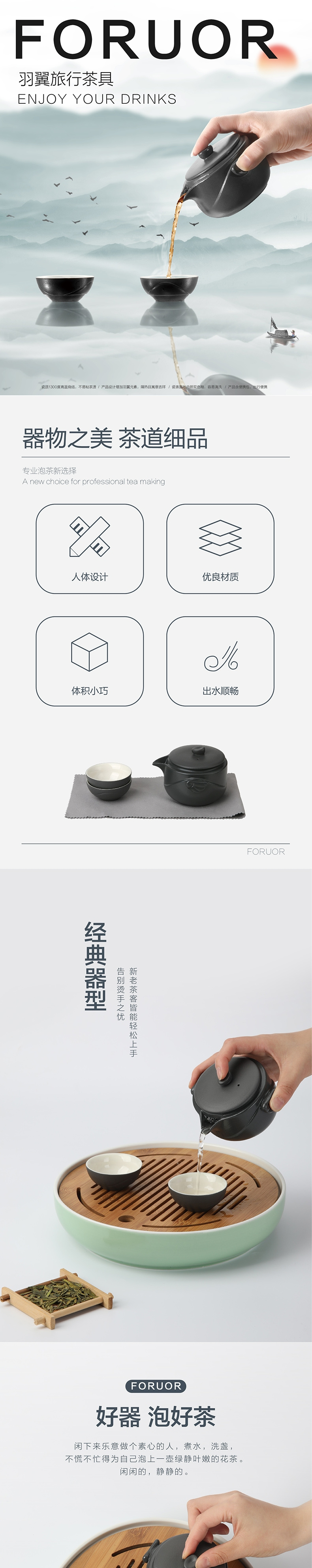 首頁 > 全部禮品 > 水具禮品 > 茶具套裝 > FORUOR 活優(yōu)羽翼旅行茶具雅黑180ML