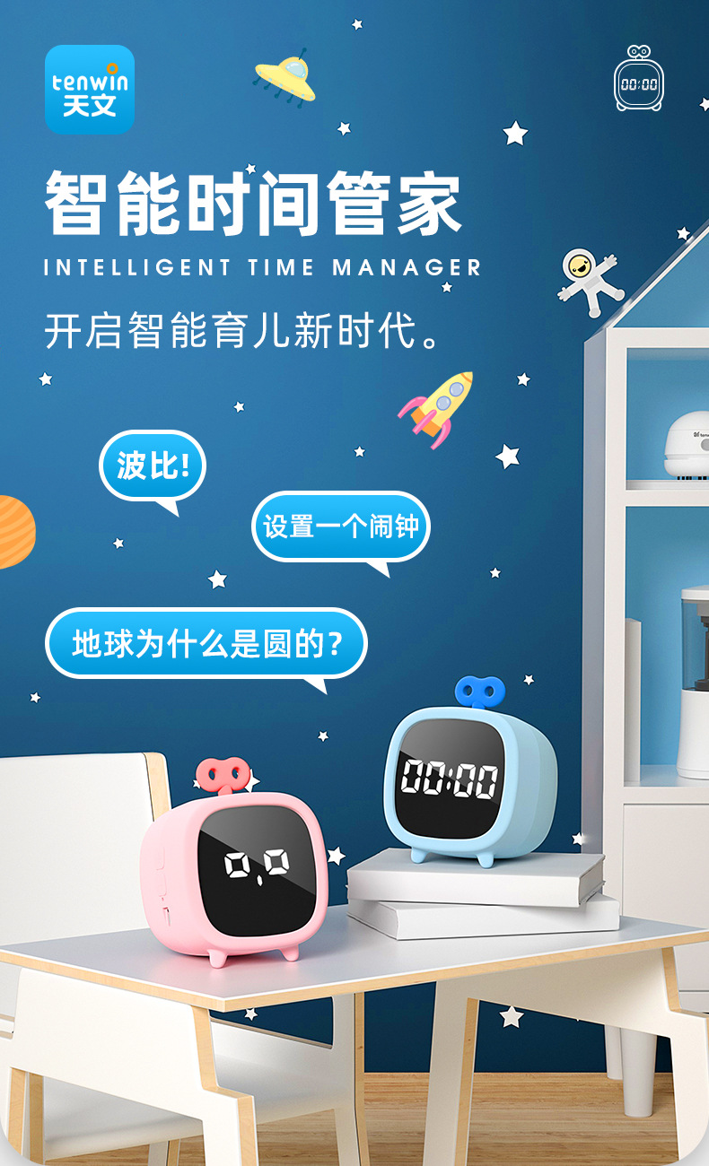 天文智能鬧鐘早教語音對(duì)話控制提醒學(xué)生用可充電時(shí)間管理器