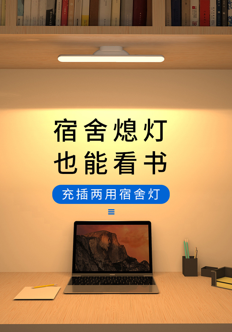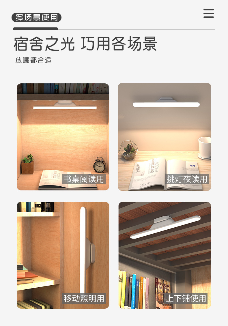 • 酷斃LED小臺燈USB充電護眼書桌學生寢室神器長條燈管吸附式宿舍燈
