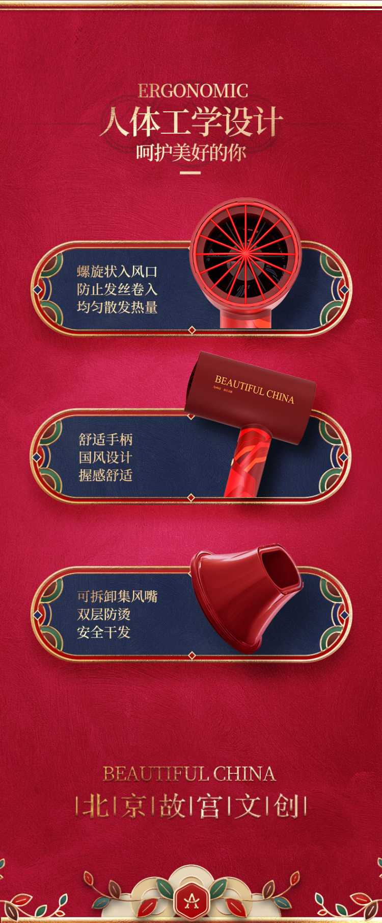 艾優(yōu)(Apiyoo)電吹風(fēng)家用吹風(fēng)機(jī)負(fù)離子大功率速干冷熱風(fēng)恒溫護(hù)發(fā)吹風(fēng)筒故宮聯(lián)名禮盒款
