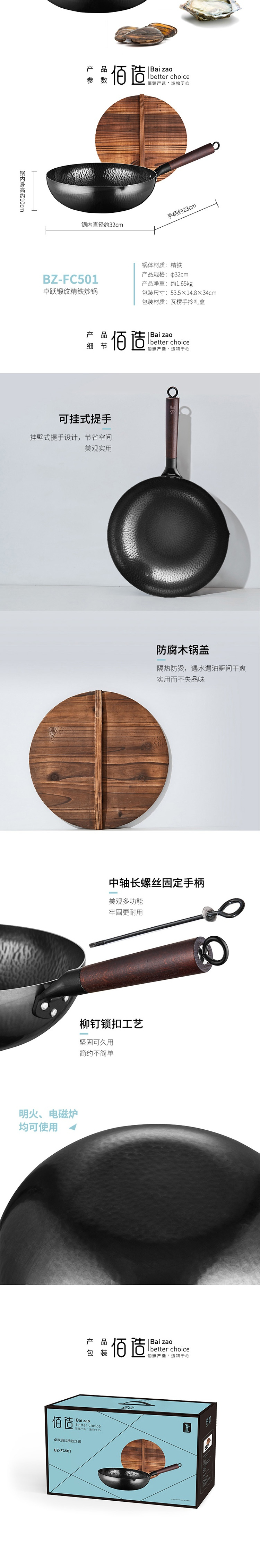 佰造卓越鍛紋精鐵炒鍋BZ-FC501 鍛打純鐵鍋通用