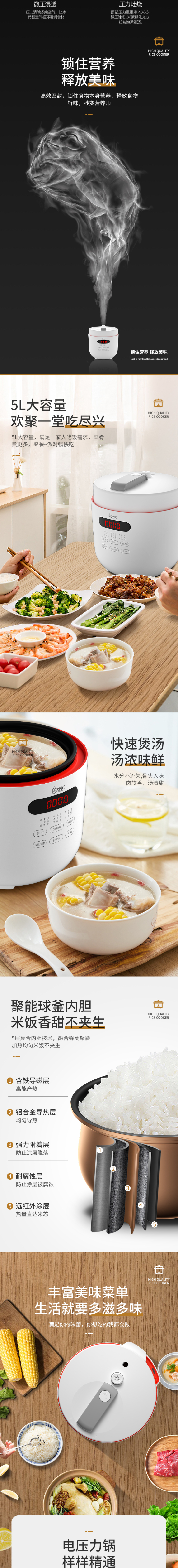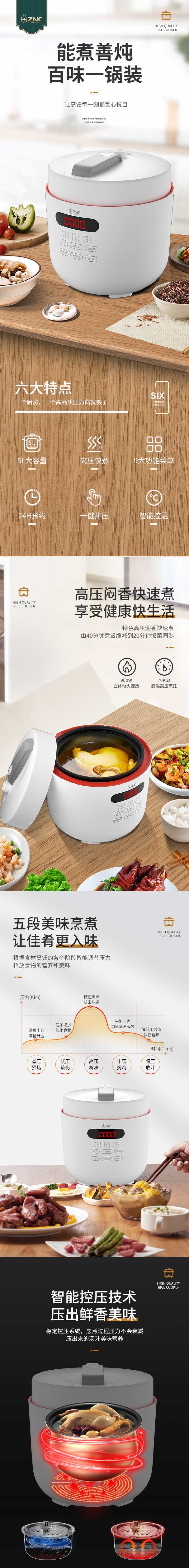 • ZNC 英國皇家盾牌電壓力鍋5L家用飯煲旗艦多功能3智能4人大容量特價(jià)電高壓飯煲 5L