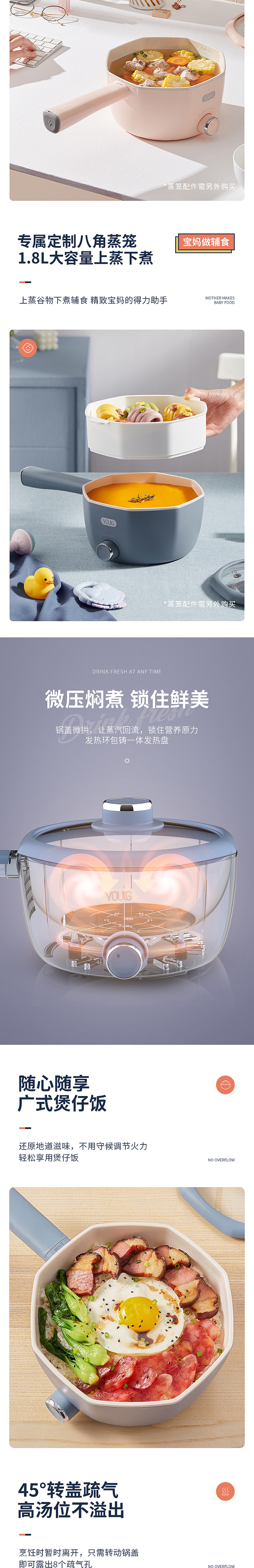 首頁 > 全部禮品 > 家居家電 > 電燉鍋 > YOULG陽朗電煮鍋學生鍋多功能家用八角鍋電炒鍋一體式不沾電火鍋