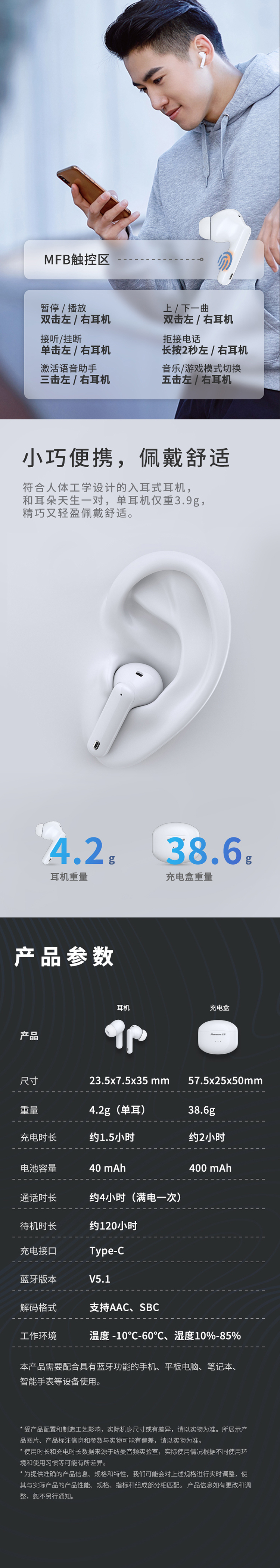 • 紐曼Q7藍(lán)牙耳機(jī) 真無線入耳式音樂 ANC主動降噪通話降噪