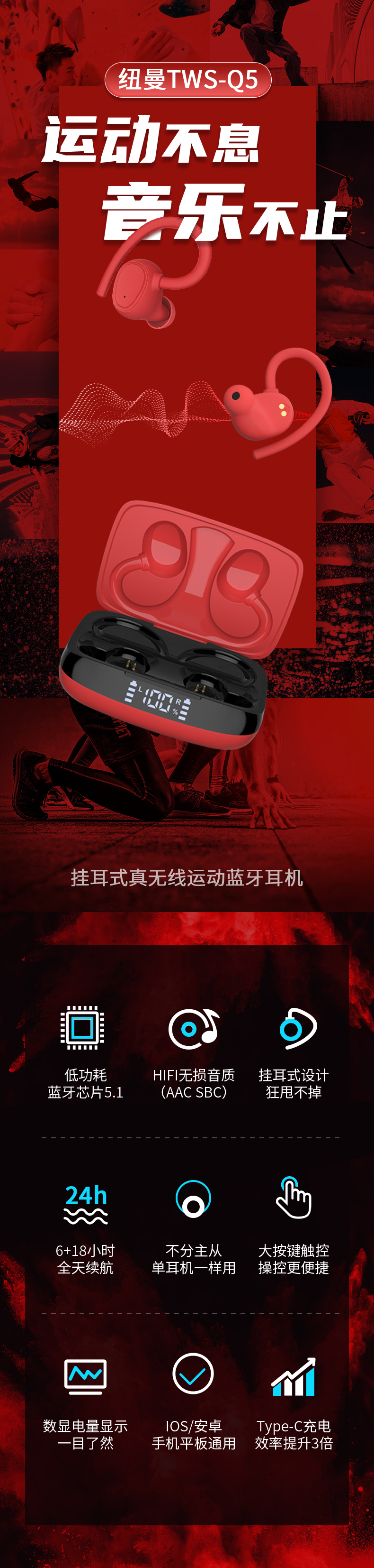 紐曼(Newmine)Q5 藍牙耳機 真無線TWS 掛耳式 音樂運動耳麥