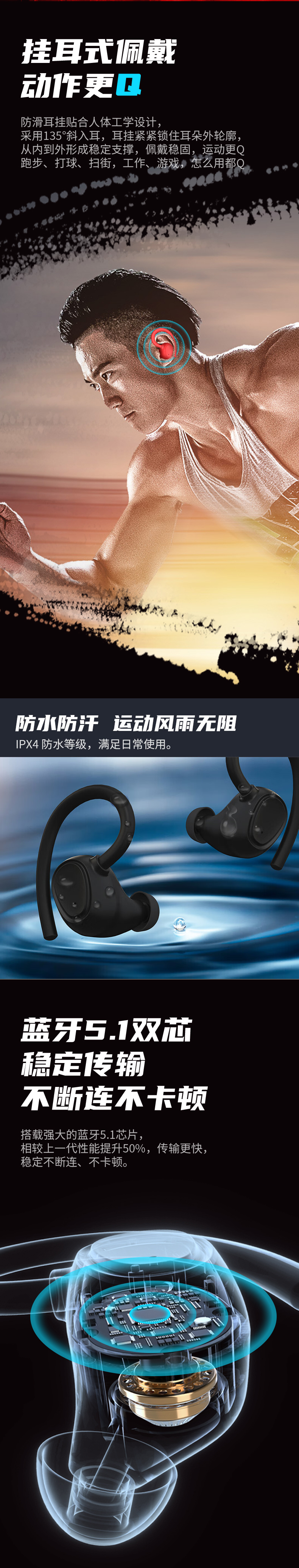 首頁 > 全部禮品 > 電子數(shù)碼 > 耳機 > 紐曼(Newmine)Q5 藍牙耳機 真無線TWS 掛耳式 音樂運動耳麥