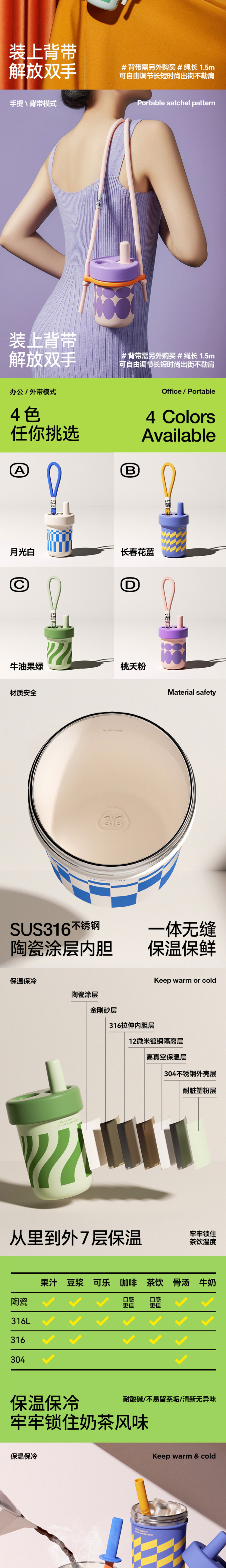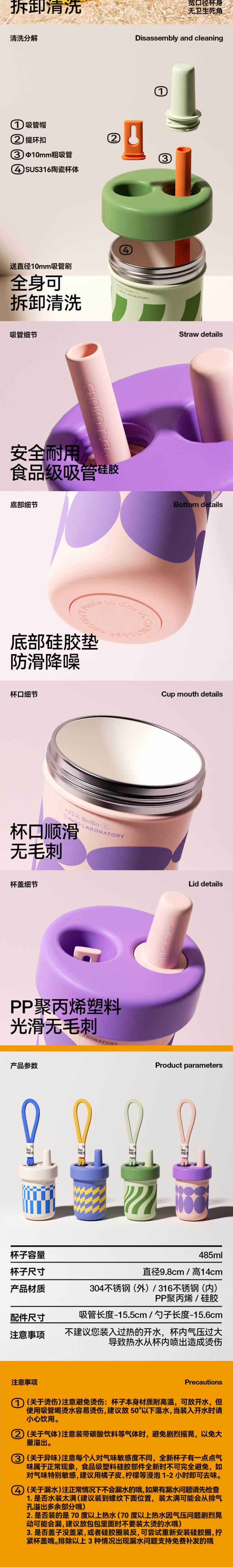 • chakolab隨行吸管杯保溫杯陶瓷內(nèi)膽不銹鋼大容量便攜水杯子bobo杯