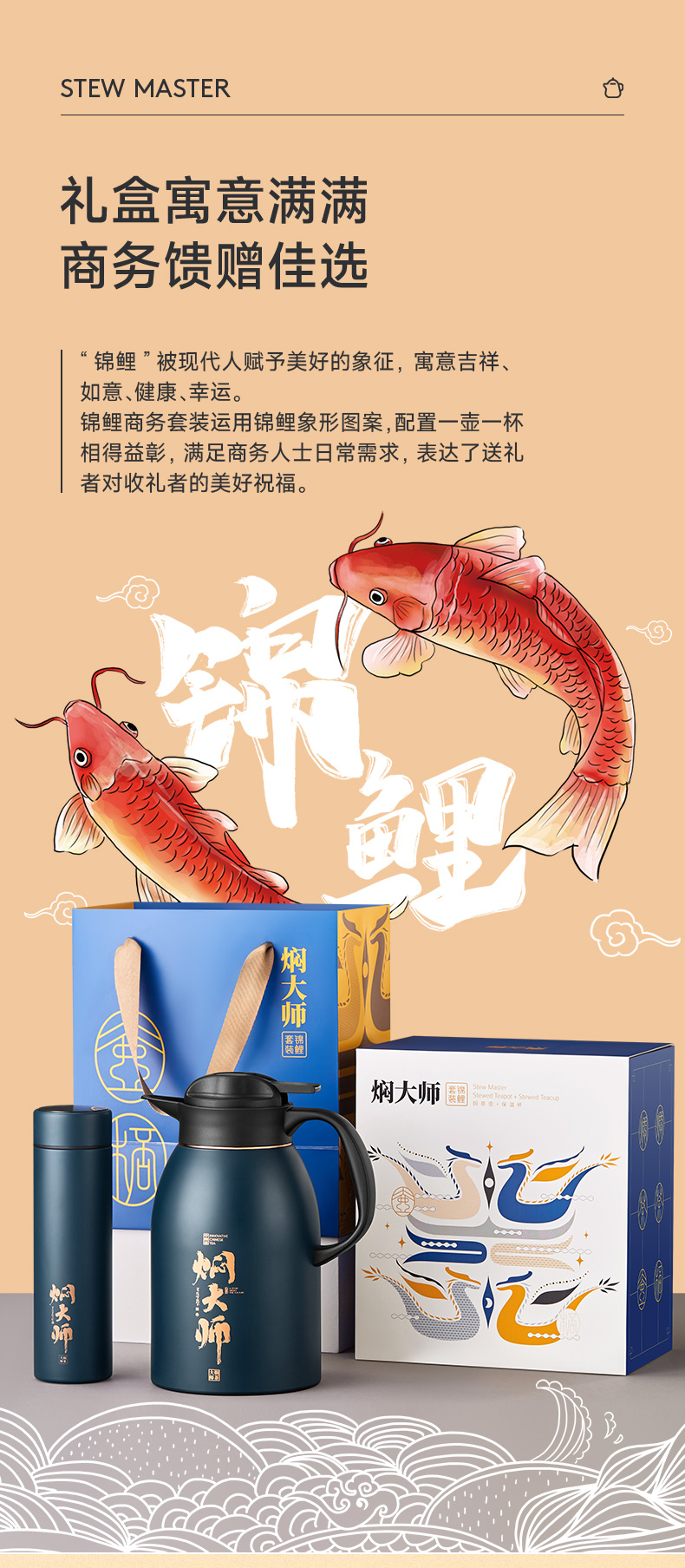 首頁 > 全部禮品 > 水具禮品 > 保溫杯 > 燜大師(MENDASHI) 錦鯉商務(wù)套裝MT1602W燜茶壺保溫杯組合套裝商務(wù)家用辦公