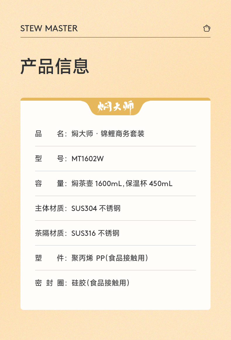 • 燜大師(MENDASHI) 錦鯉商務(wù)套裝MT1602W燜茶壺保溫杯組合套裝商務(wù)家用辦公