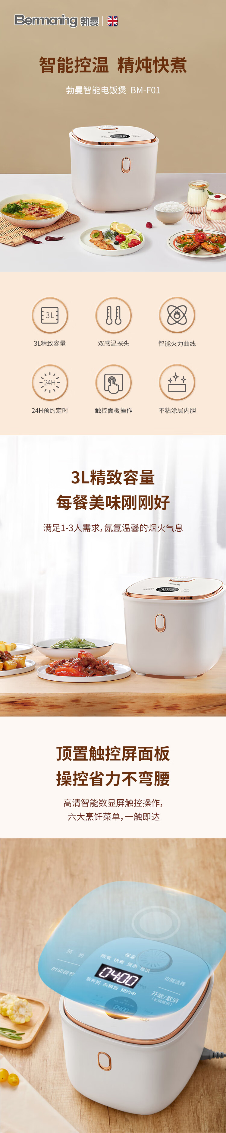 • Bermaning英國(guó)Bermaning智能電飯煲BM-F01家用多功能蒸煮米飯煲湯電飯鍋微電腦預(yù)約定時(shí)