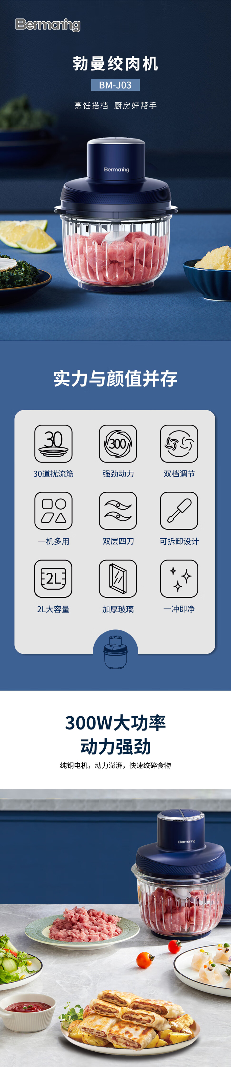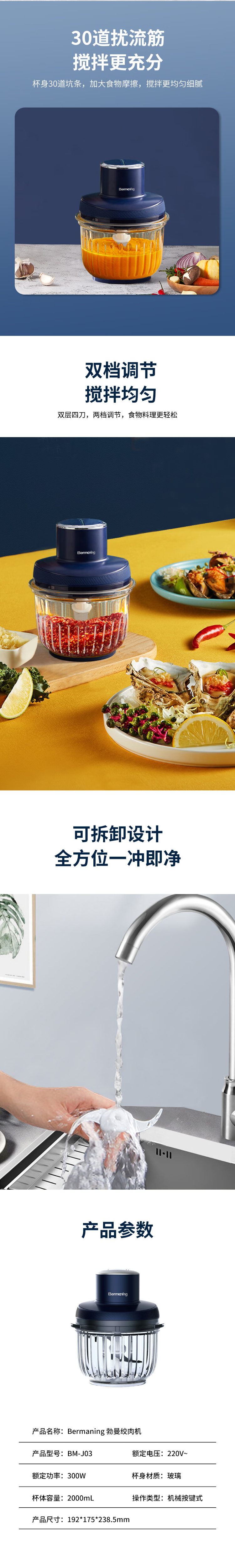 • Bermaning 英國Bermaning絞肉機BM-J03自動家用攪拌機多功能絞餡機打蒜碎肉輔食