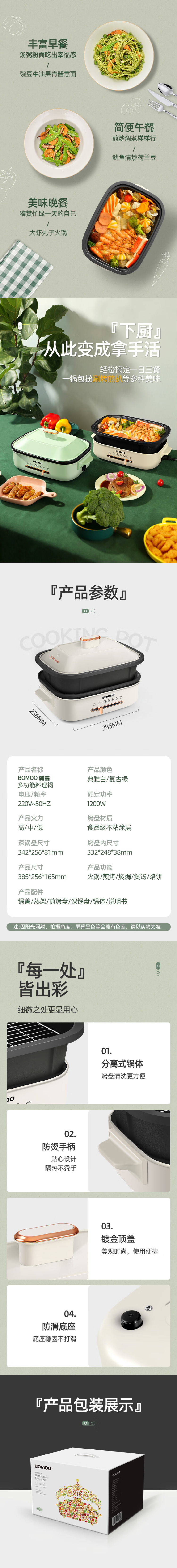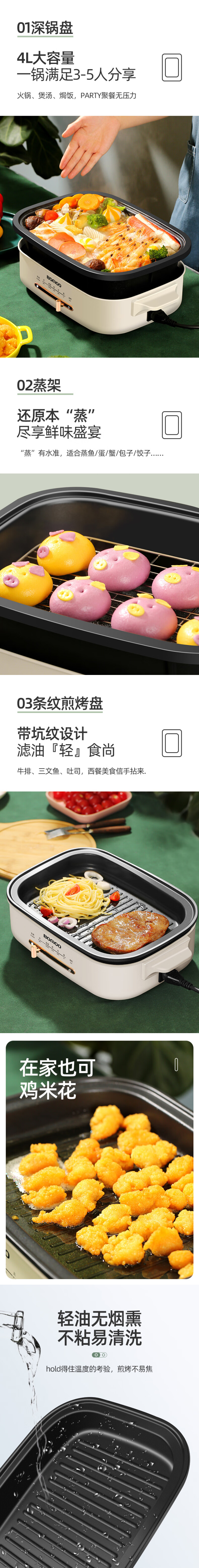勃曼 英國(guó)Bomoo多功能料理鍋BM-180蒸煮燉煎火鍋多用鍋烤肉涮家用一體鍋
