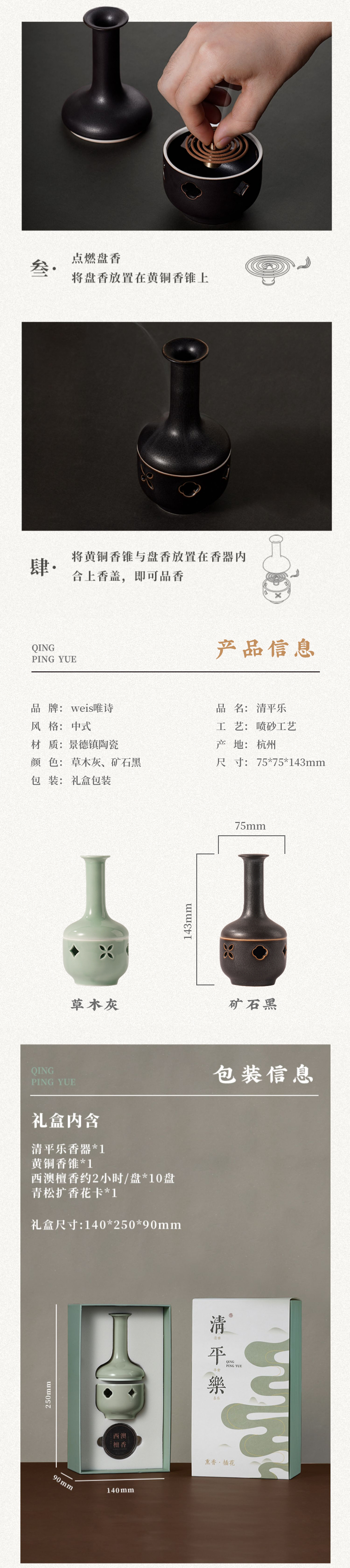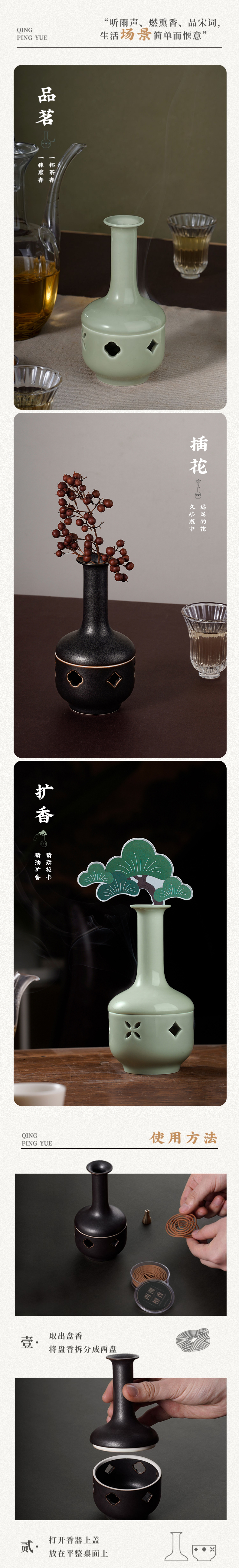 • 清平樂平安喜樂陶瓷花瓶盤香爐精油香薰擴香器套裝中式創(chuàng)意禮品