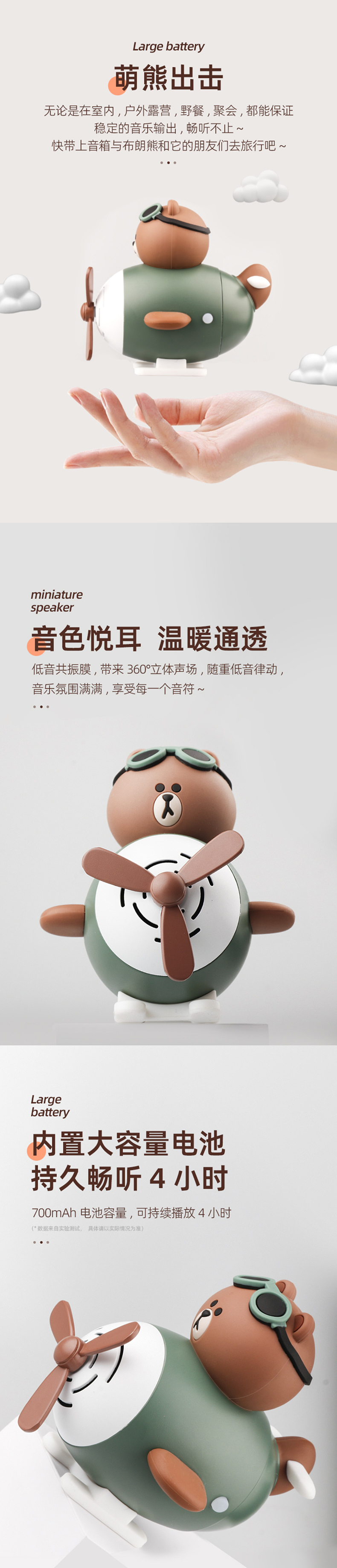 EWa/音為愛 A12夢想家飛行員布朗熊聯名飛機款藍牙音箱兒童節(jié)送禮