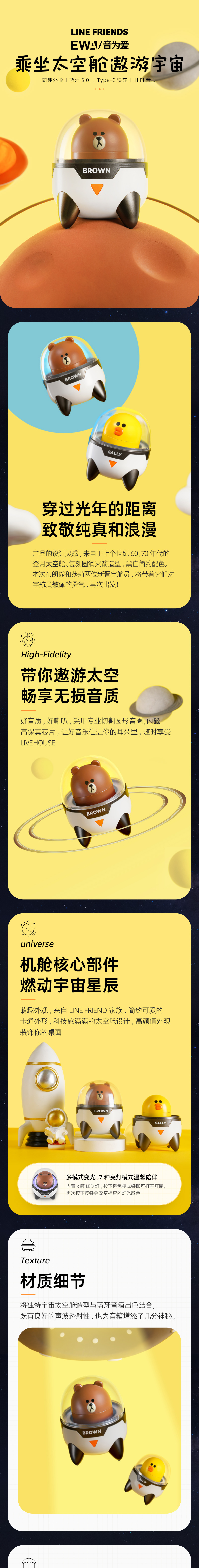 • EWA/音為愛 W2太空艙LINE FRIENDS布朗熊藍牙小音箱寶寶生日禮物