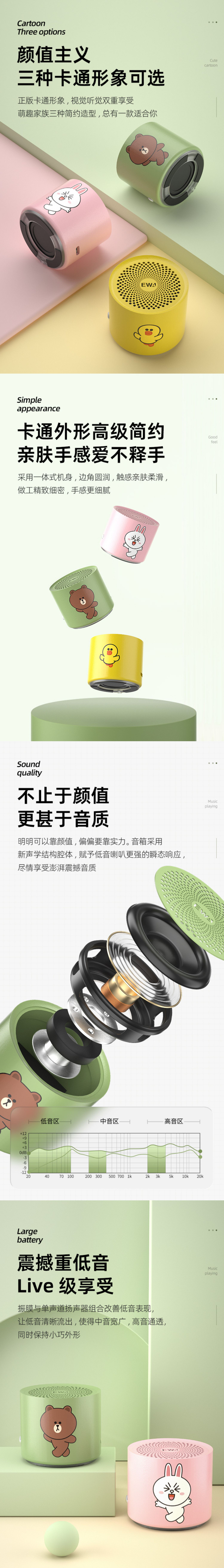 EWA音為愛(ài)LINE FRIENDS無(wú)線藍(lán)牙小型音箱A128重低音防水便攜音響