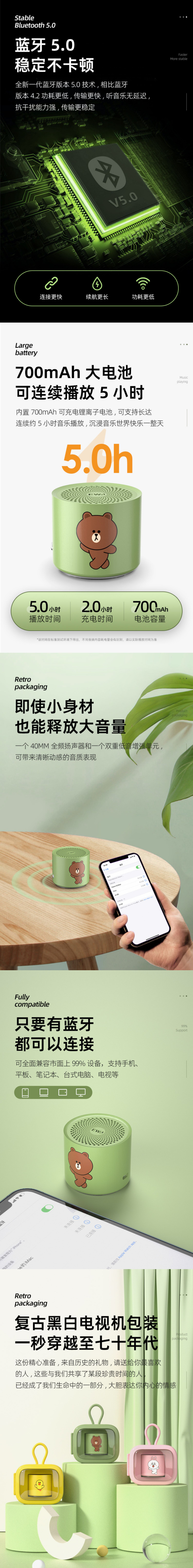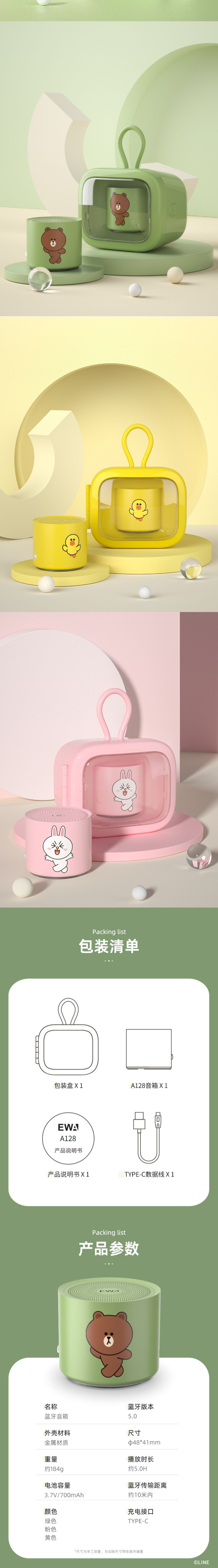 • EWA音為愛(ài)LINE FRIENDS無(wú)線藍(lán)牙小型音箱A128重低音防水便攜音響