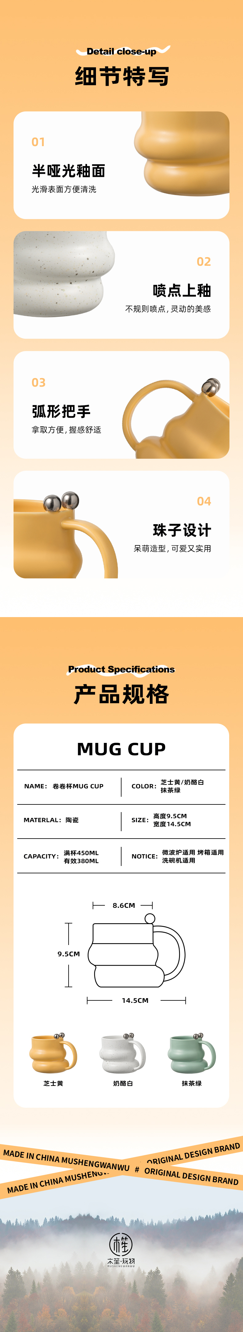 • 木笙玩物原創(chuàng)馬克杯水杯陶瓷杯咖啡杯女高顏值牛奶早餐杯可愛杯子
