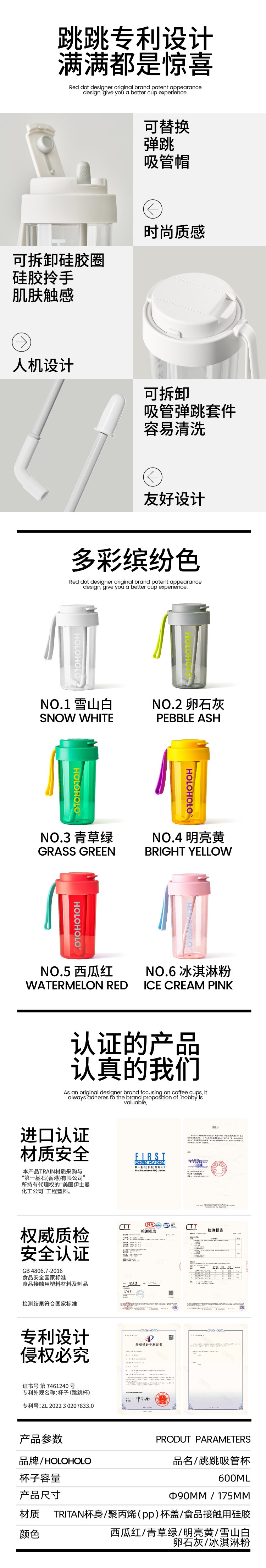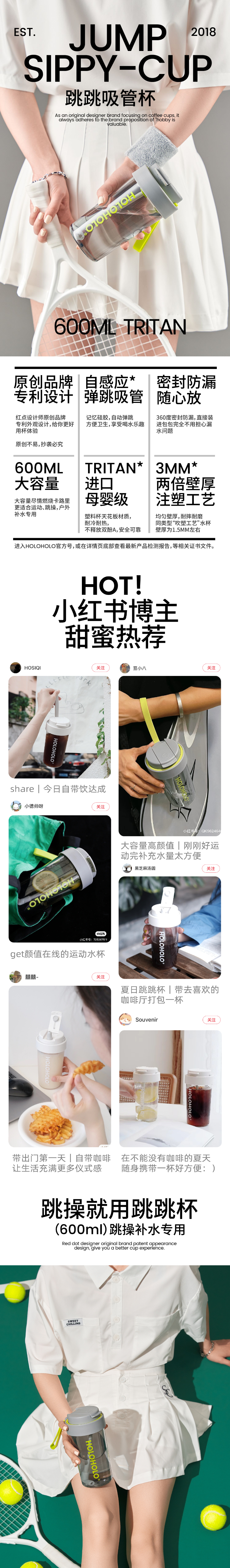 holoholo跳跳杯 吸管杯女男學(xué)生高顏值咖啡隨行大容量運(yùn)動(dòng)水杯子